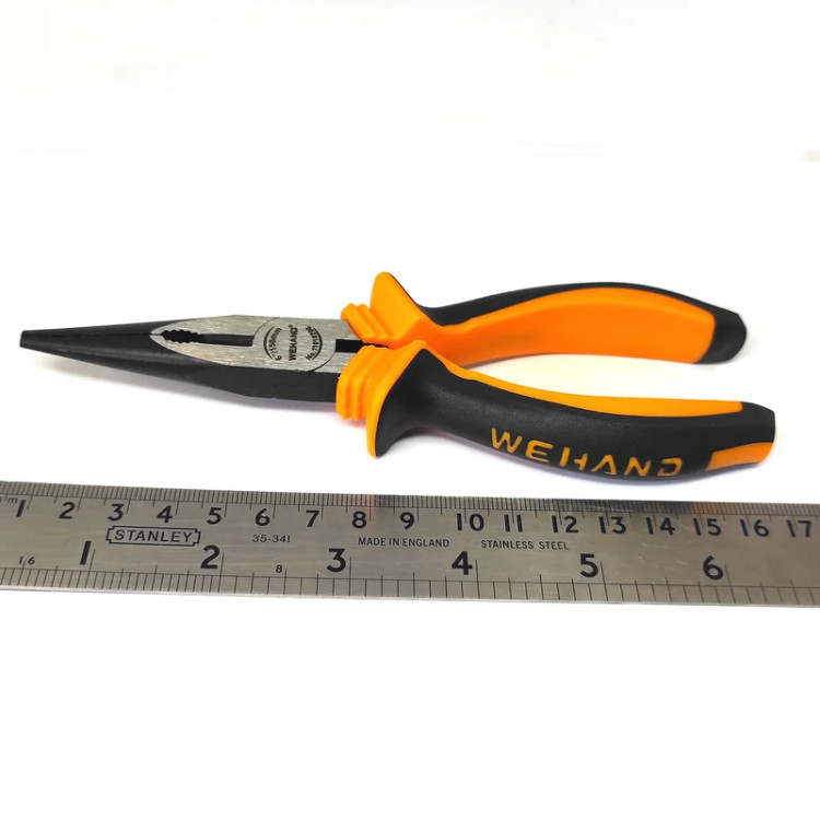 انبرهای تولیدشده توسط شرکت WEHAND وی هند، در گونههای مختلفی عرضه میشود و دمباریک 6 اینچی یکی از این محصولات است. این دمباریک برای کارهای حرفهای مناسب است. جنس مناسبی برای ساخت این انبر به کار گرفته میشود. این محصول با طول 16 سانتیمتر دارای تیغهای فولادی است. جنس استیل (فولاد) تیغه باعث مقاومت بالای این وسیله در برابر فشار مقاومت بالایی داشته باشد. برای جلوگیری از زنگ زدن تیغه، رنگ شفافی به آن میزنند. روی تیغهی این محصول قسمتی برای برش سیم یا اجسام دیگر قرار دارد. دهانهای این ابزار تا 35 میلیمتر باز میشود. طراحی مناسب این انبر باعث شده تا از این ابزار در کارهای صنعتی استفاده شود.